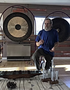 He currently gives private and small group Sound Therapy sessions out of his home in Union, and gives both indoor and outdoor Sound Immersions or “Gong Baths” throughout Maine.